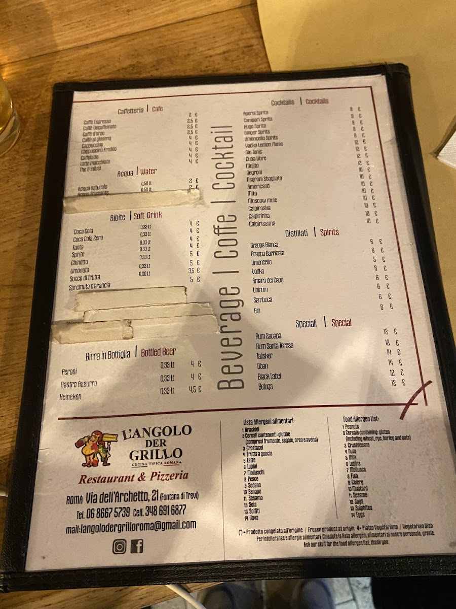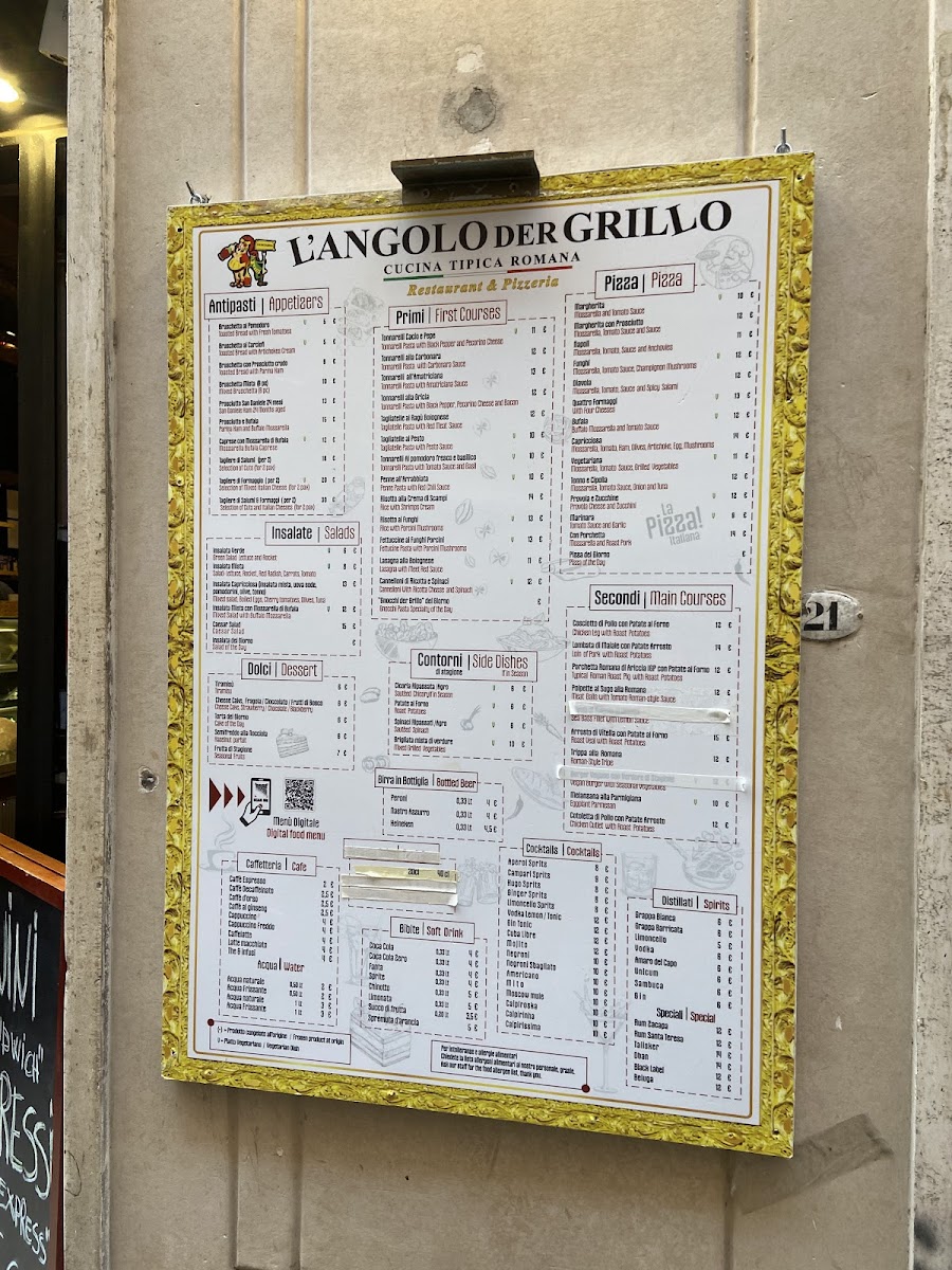 L'angolo der Grillo, nestled near Rome’s iconic Fontana di Trevi, offers an authentic Roman dining experience that delights both locals and travelers. The menu highlights traditional antipasti like bruschetta (€5), classic primi dishes (€10), and fresh insalate e contorni (€8). However, the true star is the Pinsa Romana, a Roman-style pizza that perfectly balances a thin, crispy crust with premium, flavorful toppings.